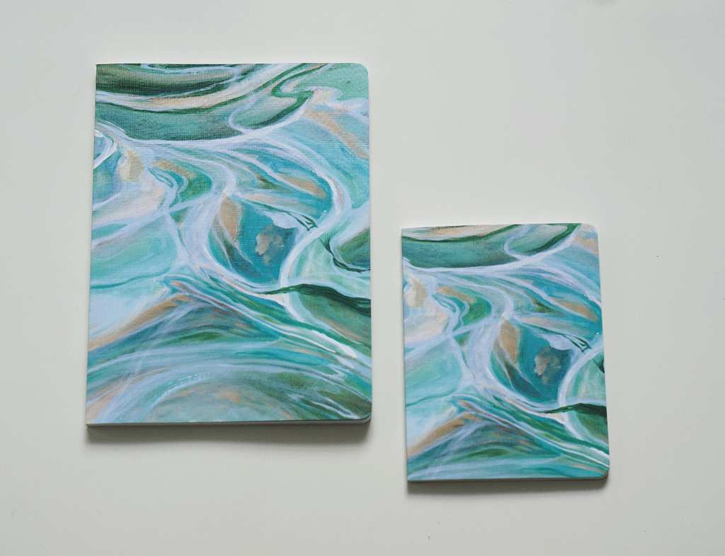 Quality meets creativity. Linen cover printed with original artwork front and back. 60 or 100 perfect bind pages inside made from 100% recycled uncoated paper. Created by artist & designer, Leanna Wolff, these journals are lined on the right page and blank on the left so you can write and sketch in the same go-to notebook. Inspirational quotes and art on 4 additional pages inside. Made in Honolulu, Hawaii.